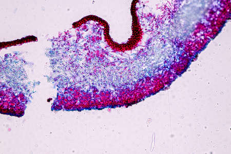 Characteristics of Lichen, hyphae and Symbiotic algae under the microscope for education.