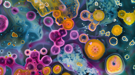 An abstract representation of dental microscopy features vibrant colors and intricate details, highlighting the beauty of biological structures under magnification and captivating viewers.