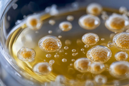 Bubbles rising gracefully in a golden liquid, capturing a moment of effervescence. Generative AI