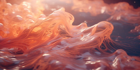 Iridescent pink and blue liquid waves with light reflections. That the image is generated using AI.