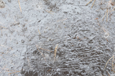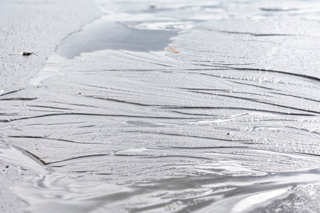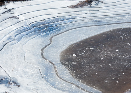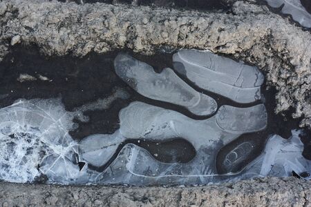 texture. Frozen puddle, spring, ice patterns.