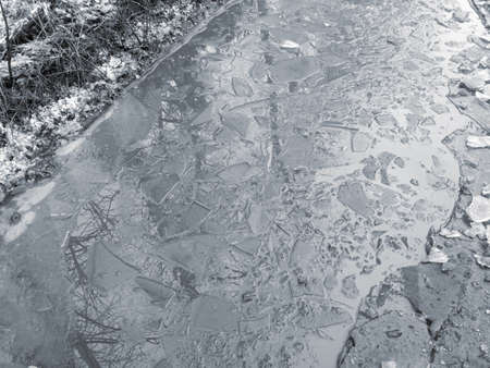 Crashed ice on the river surface. Abstract background