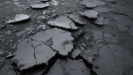 Detailed view of a cracked surface showing intricate patterns and textures caused by natural geological processes. Created with Generative AI