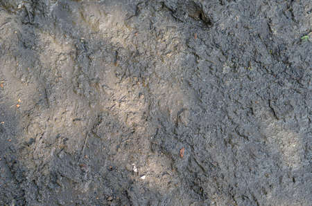 Closeup photo texture of dirt and mud, dark brown colored substance.