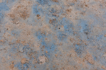Mud texture or wet soil as natural organic clay and geological sediment mixture as in roughing it in a dirty muddy country road bog after the rain or rainy season found in a damp moist climate.