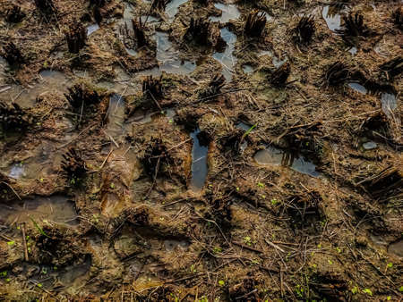Picture of a muddy paddy field on a winter morning in the eastern side of India.