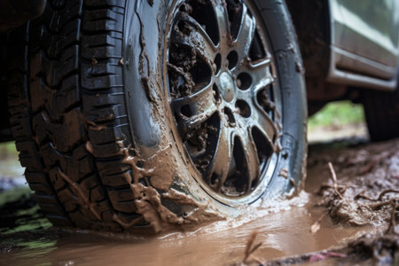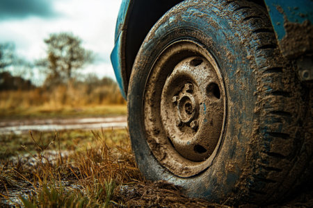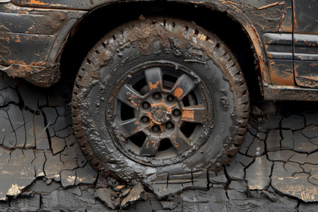 detail of muddy wheel arch during offroad adventure, created with generative ai