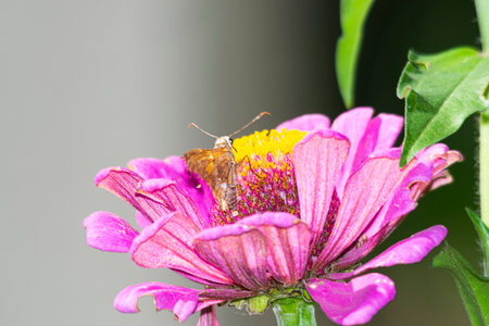 Argentinian jumping butterfly on a purple zinnia flower