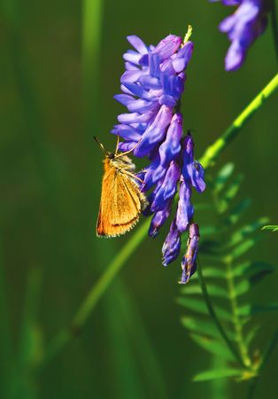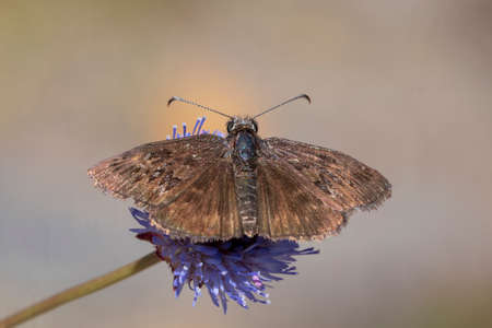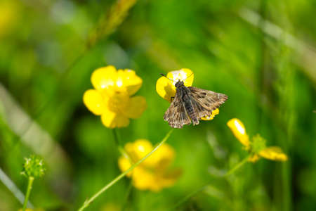 Day butterfly perched on flower, Erynnis tages.