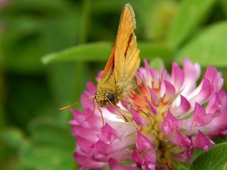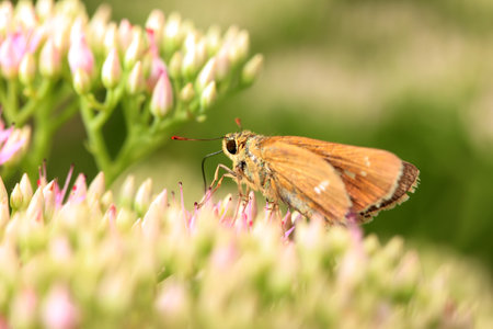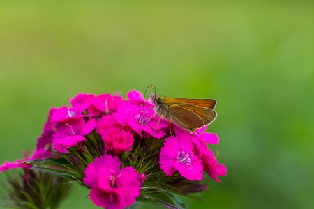 Small skipper butterfly - Thymelicus sylvestris on Maiden pink flower