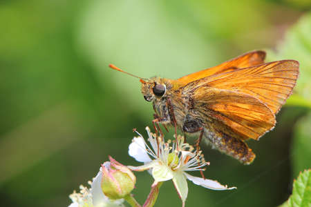 Large Skipper - Ochlodes sylvanus, tiny orange butterfly from European meadows and grasslands, Czech Republic.