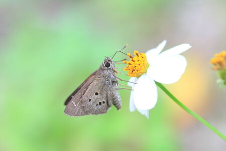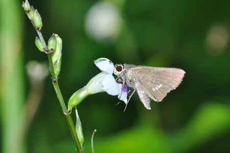 Parnara guttata Bremeret Grey, Rice skipper butterfly, A butterfly is on the flower