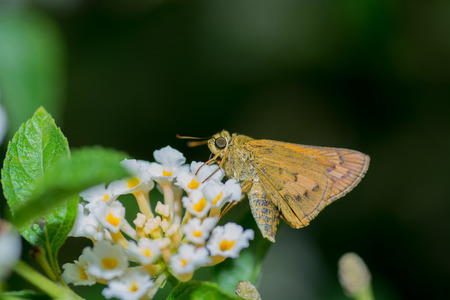 Close up shot of Atalopedes campestris butterfly eating on flower at Las Vegas, Nevada