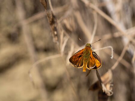 Large skipper male (Ochlodes sylvanus) butterfly sitting on dry plant