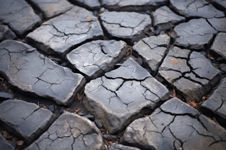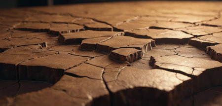 Cracked earth shows the severe impact of drought with large fissures indicating lack of moisture and extreme weather conditions affecting the environment.