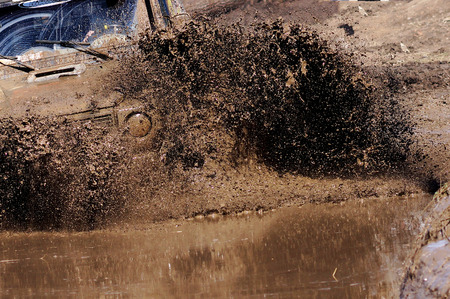 Off road vehicle splattering mud