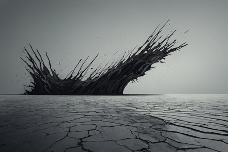 Water droplets splash on the cracked ground