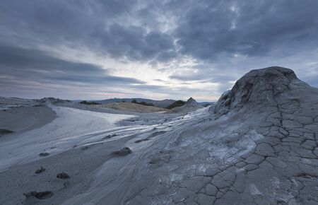 Deserted selenar landscape from Mud Volcanoes - Buzau, Romania unique geological phenomenon in Europe where the earth gas reaches the surface through hills making small Mud volcanoes
