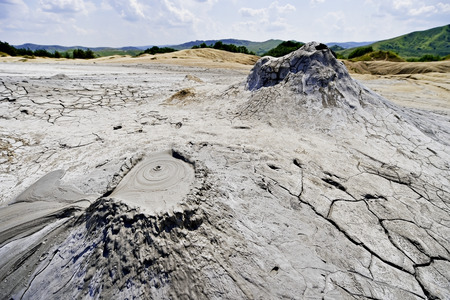 Muddy volcanoes Paclele Mari near Buzau, Romania. Mud and natural-gas eruptions create small volcanoes in natural reserve.