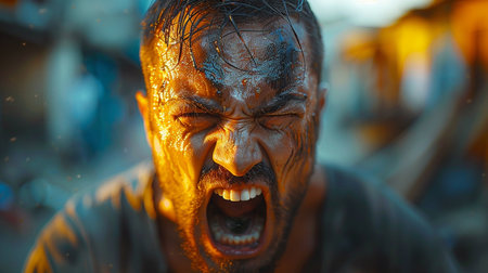 Digital image of angry man yelling on the ground, high quality, high resolution