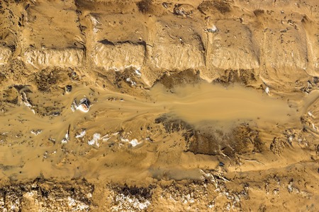 Muddy spring stream in the ground. Photo made in Russian Sibiria.