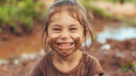funny moment of little girl smiling widely with mud on teeth generative ai