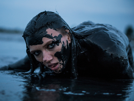 Portrait of Blonde Lays Smeared in a Healthy Black Mud