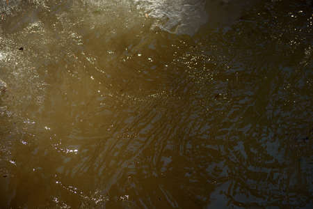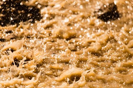Waste water splashing. Mud dirty water brown water in the river, sand in the water in the spring