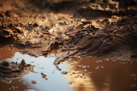 close-up of mud and dirt on road surface, created with generative ai