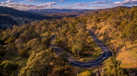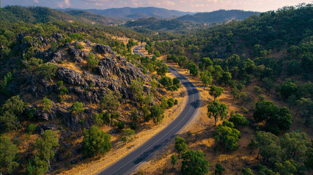 Scenic Aerial View of Curving Road Through Australian Outback Landscape
