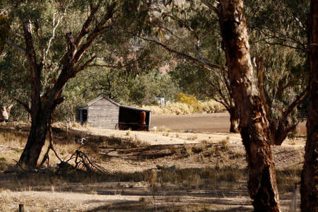 old timber farm shed amongst gumtrees on a farm in Tamworth, New South Wales, Rural Australia