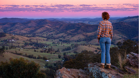 Man watching the Sunset at Pigeon House Mountain Ulladulla