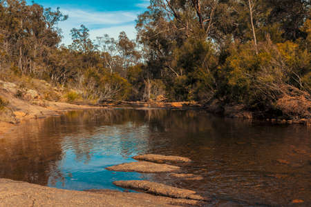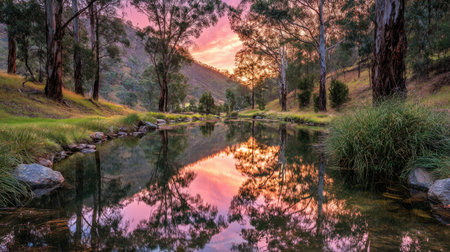 Sunset over a small river in the Yarra Valley in Australia