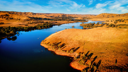 Aerial view of the Lake Eildon in morning light at Bonnie Doon Victoria