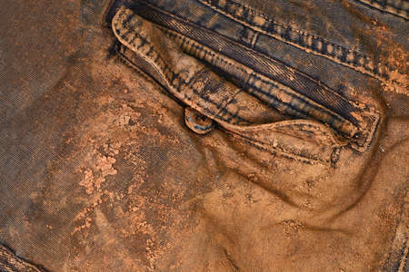 clothing items washed cotton fabric texture with seams, clasps, buttons and rivets, macro, close-up