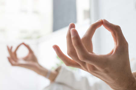 hands closeup with yoga and meditation gesture