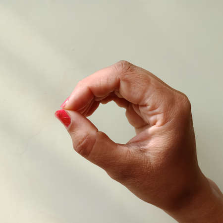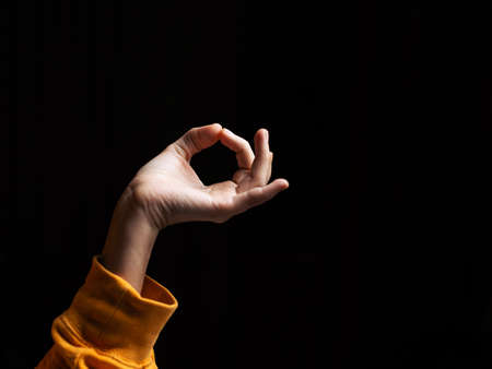 Woman's hand close-up shows a gesture ok