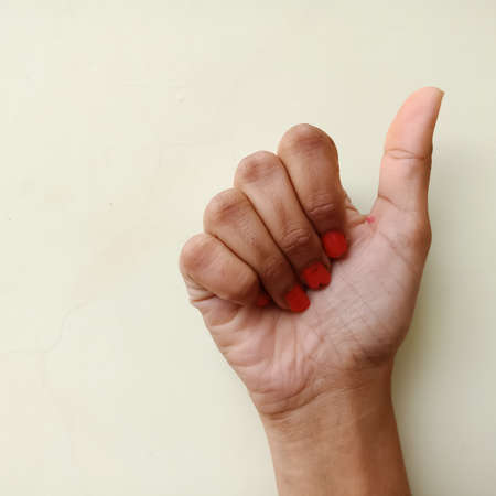 Closeup of female hand showing love sign. Love gesture concept