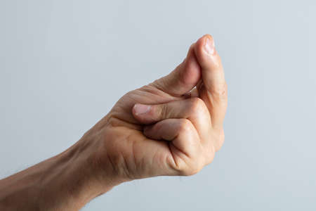Close-up Of Man's Hand Snapping His Finger Against Gray Background