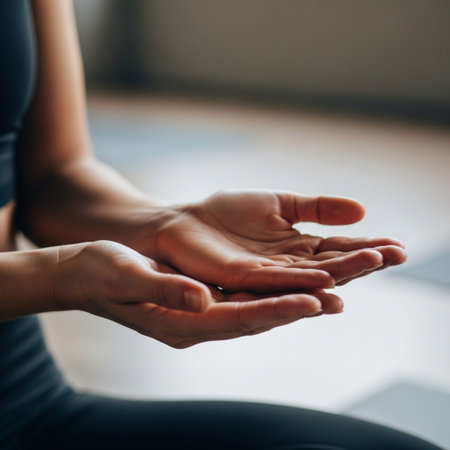 Closeup hands While Doing Yoga Exercise
