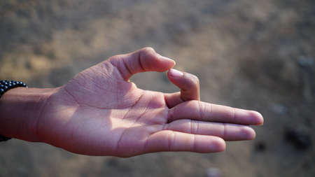 Close up image of male hand showing ok sign.