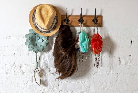 Wall in House with Scarf Hanging on Coat Rack Hooks Abstract