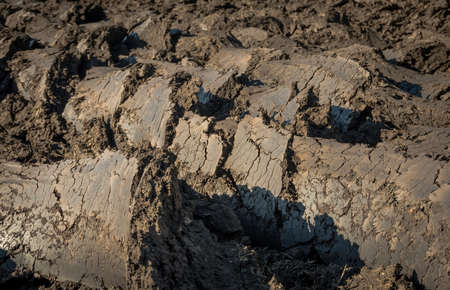 Closeup photo texture of dirt and mud, dark brown colored substance.
