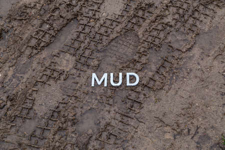 Footprint or imprint shoe in the mud.Mud texture or wet brown soil as natural organic clay and geological sediment mixture as in roughing it in a dirty muddy country ground after the rain or rainy.