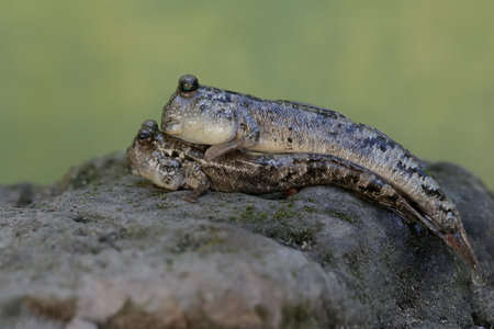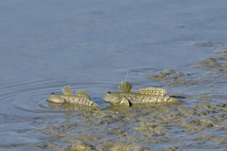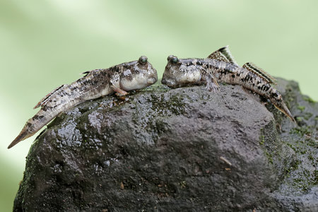 Two barred mudskippers are resting. This fish has the scientific name Periophthalmus argentilineatus.