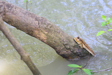 beautiful Mudskipper fish (Boleophthalmus boddarti) climbing on tree branch.