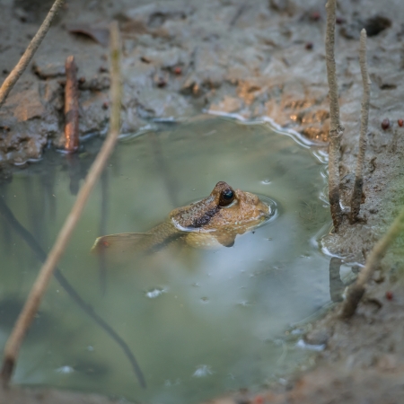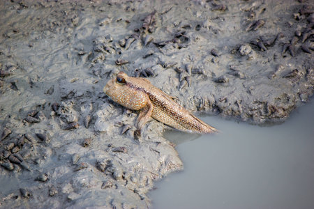 Amphibious Mudskipper in Coastal Mangrove Mudflat Environment