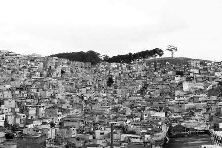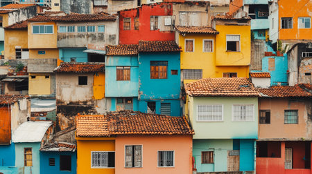 Generative AI, Brazilian favelas community, panoramic view with many houses, urban town poor house buildings