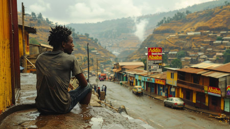 Unidentified Ethiopian man sitting on the edge of the road in Addis Ababa.