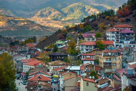Colorful autumn landscape in the mountain village. Turkey.